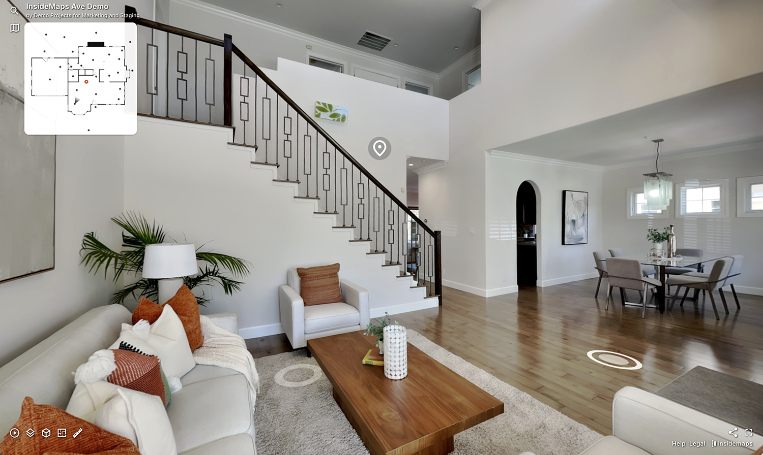 360-Degree Views: Users can navigate through spaces by rotating the view in all directions, providing a comprehensive look at every angle.